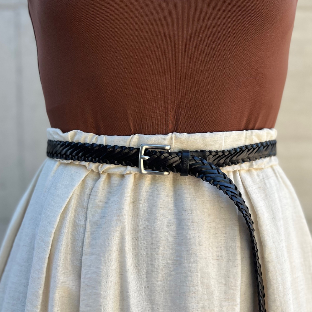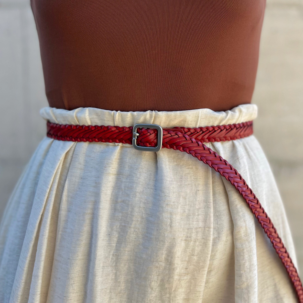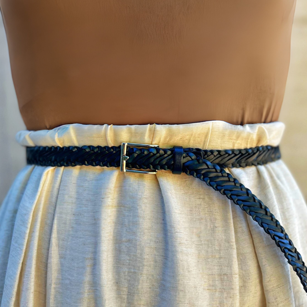 Robusta, elegante e intrecciata a mano: una cintura che si adatta ad ogni look grazie alla chiusura senza buchi.