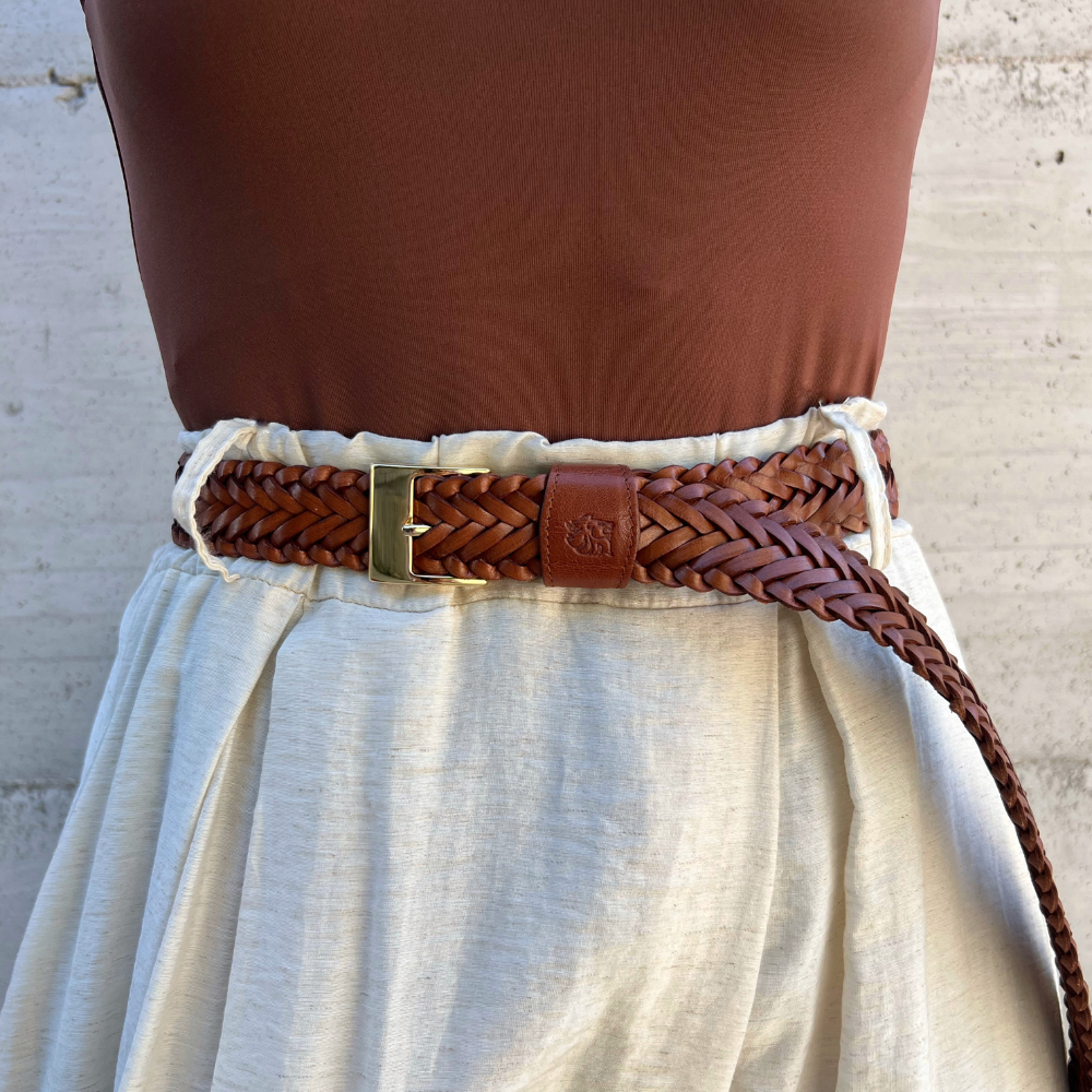 Robusta, elegante e intrecciata a mano: una cintura che si adatta ad ogni look grazie alla chiusura senza buchi.