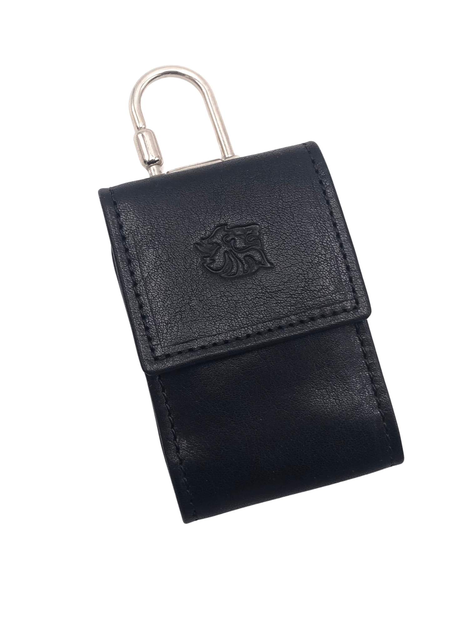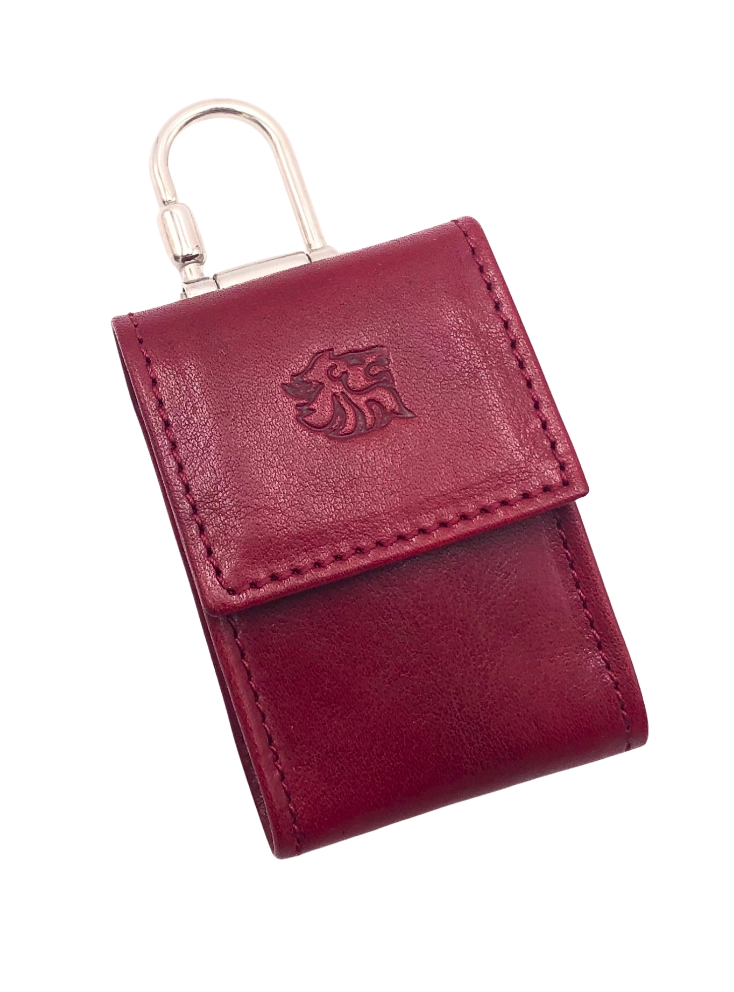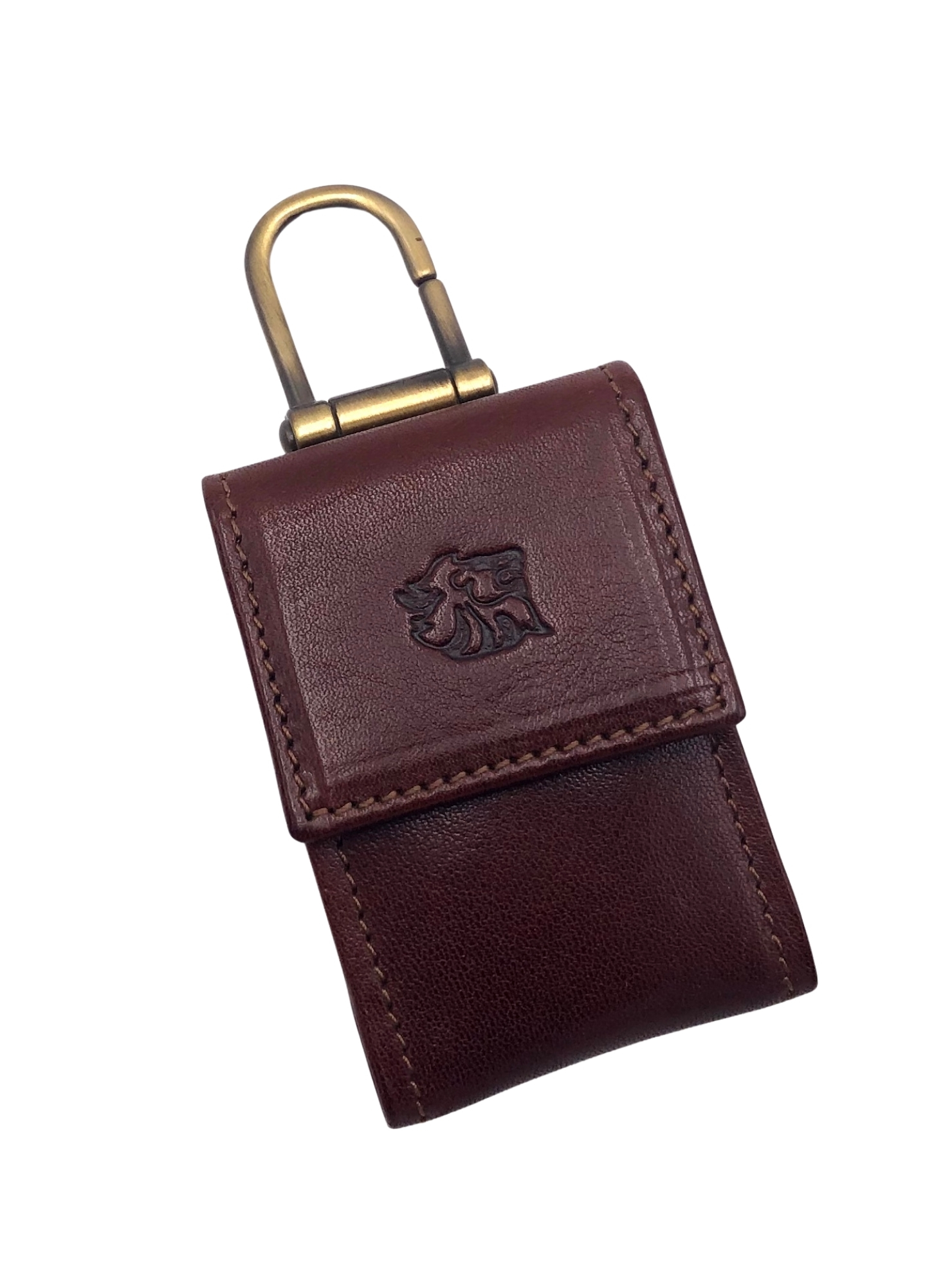 Portachiavi e porta telecomando in pelle, con finiture in tinta, logo impresso a fuoco.