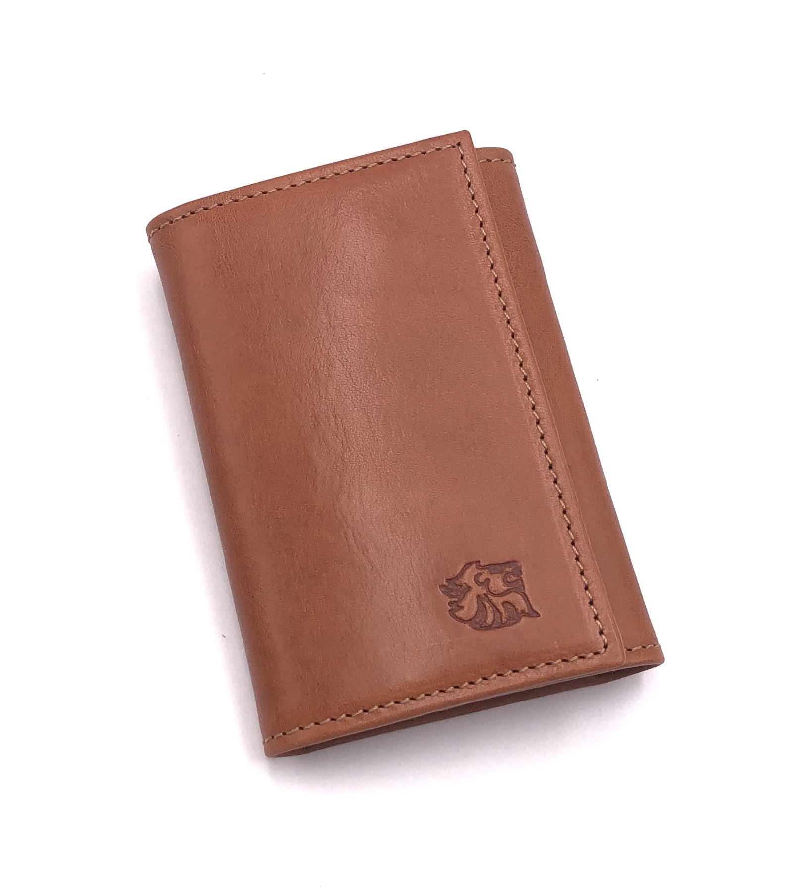 Porta chiavi in pelle, con finiture in tinta, logo impresso a fuoco.