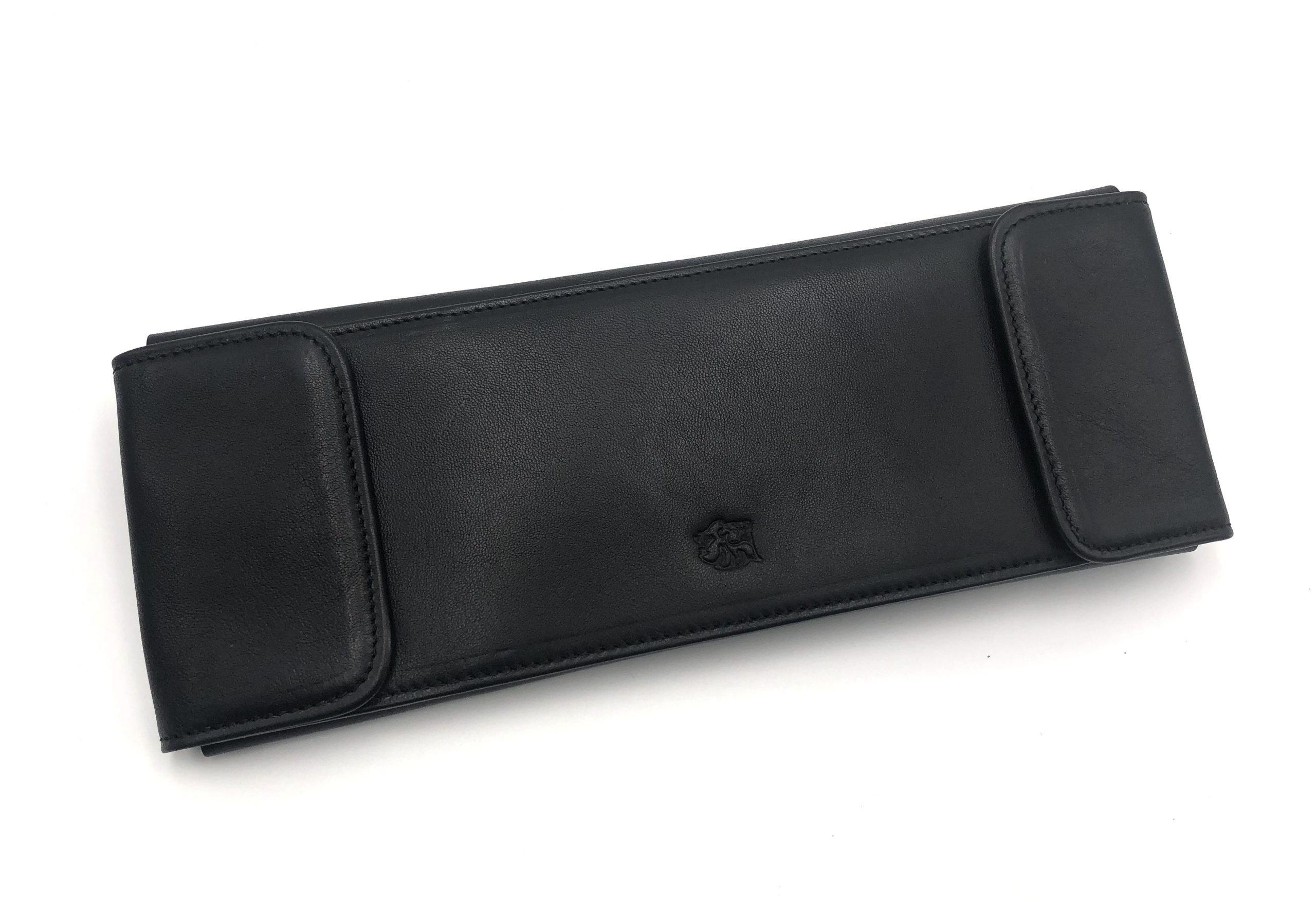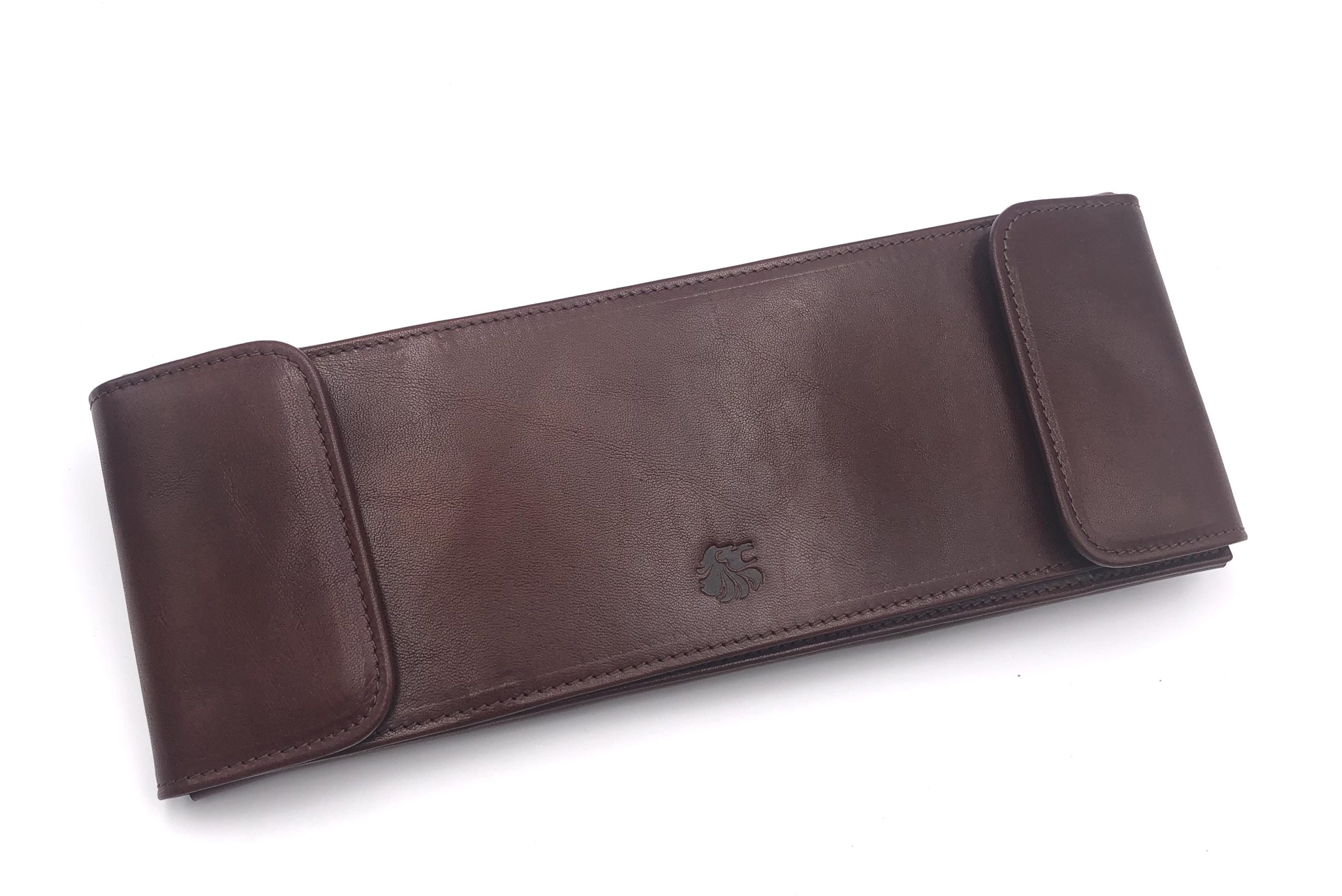 Portassegni multiplo in pelle, con finiture in tinta, logo impresso a fuoco.