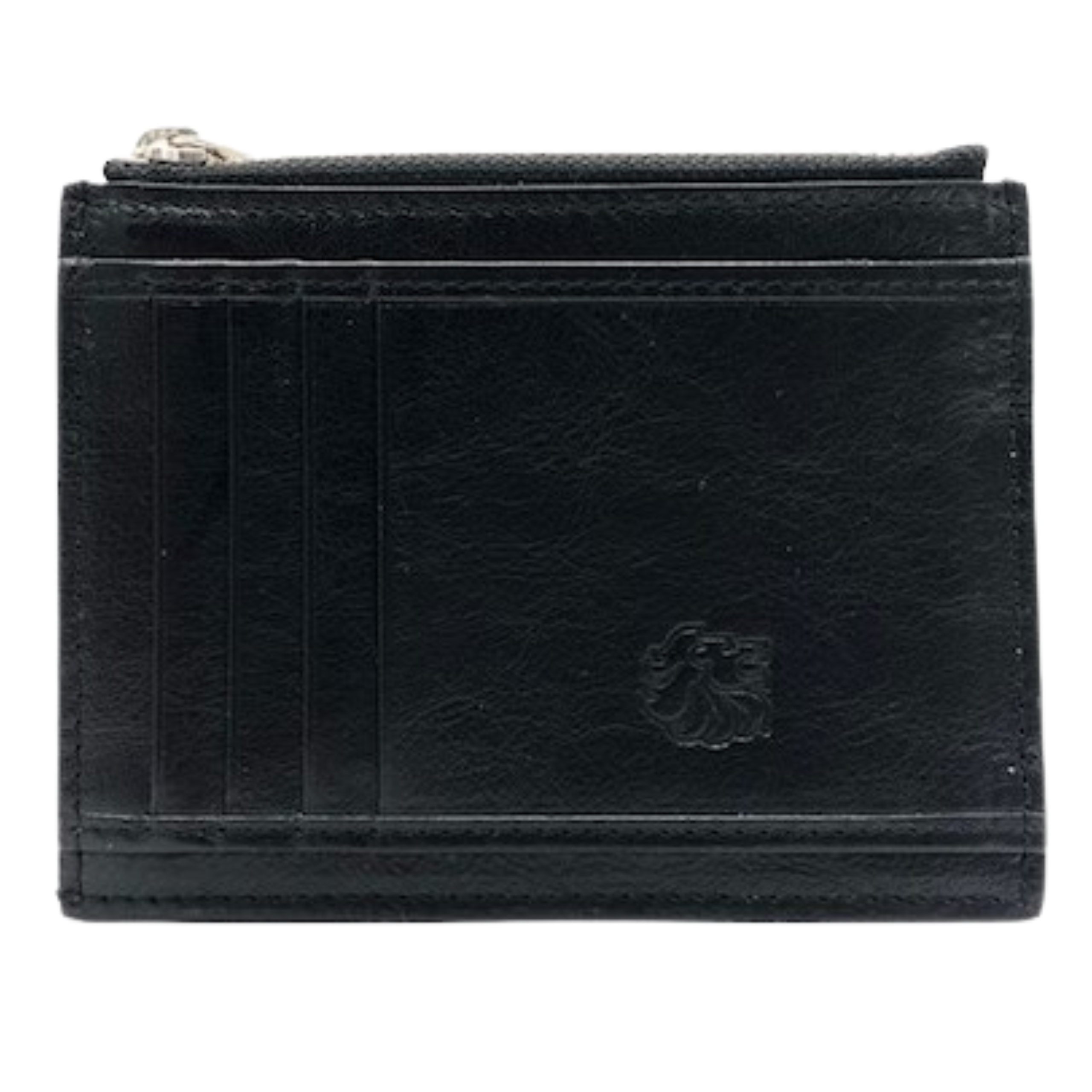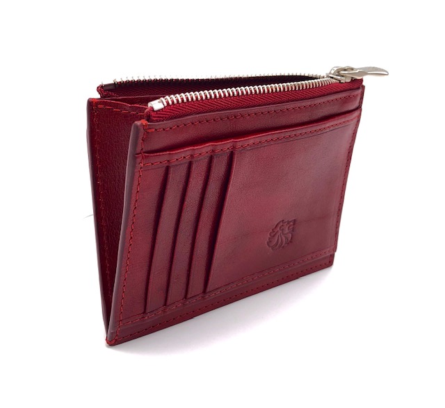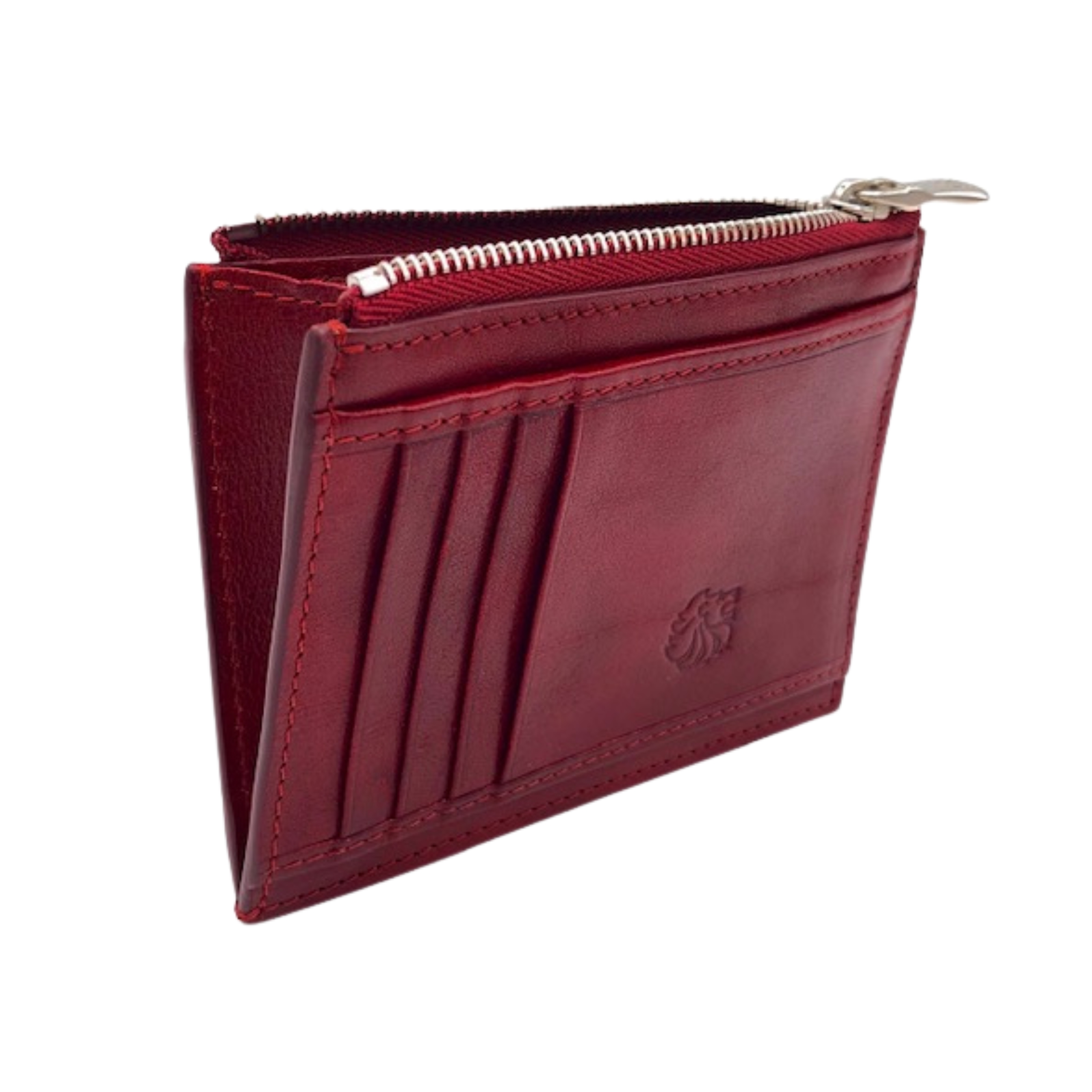 8 comparti per carte di credito e documenti, 2 tasche per banconote più una tasca portamonete con zip lo rendono un portafoglio pratico e capiente.