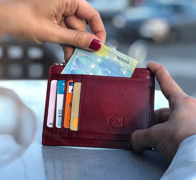 • Può contenere: Carte di credito, documenti, banconote e monete.