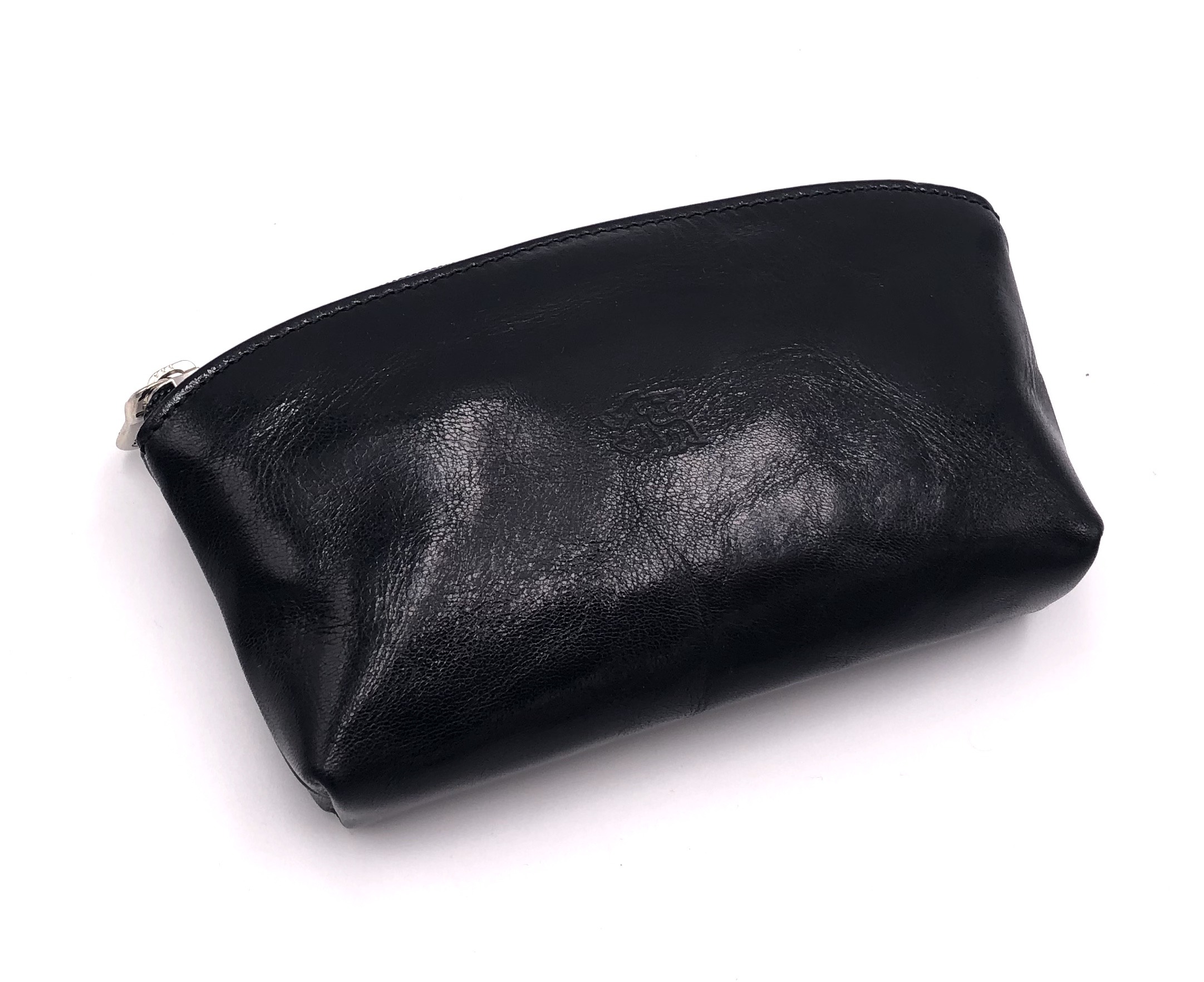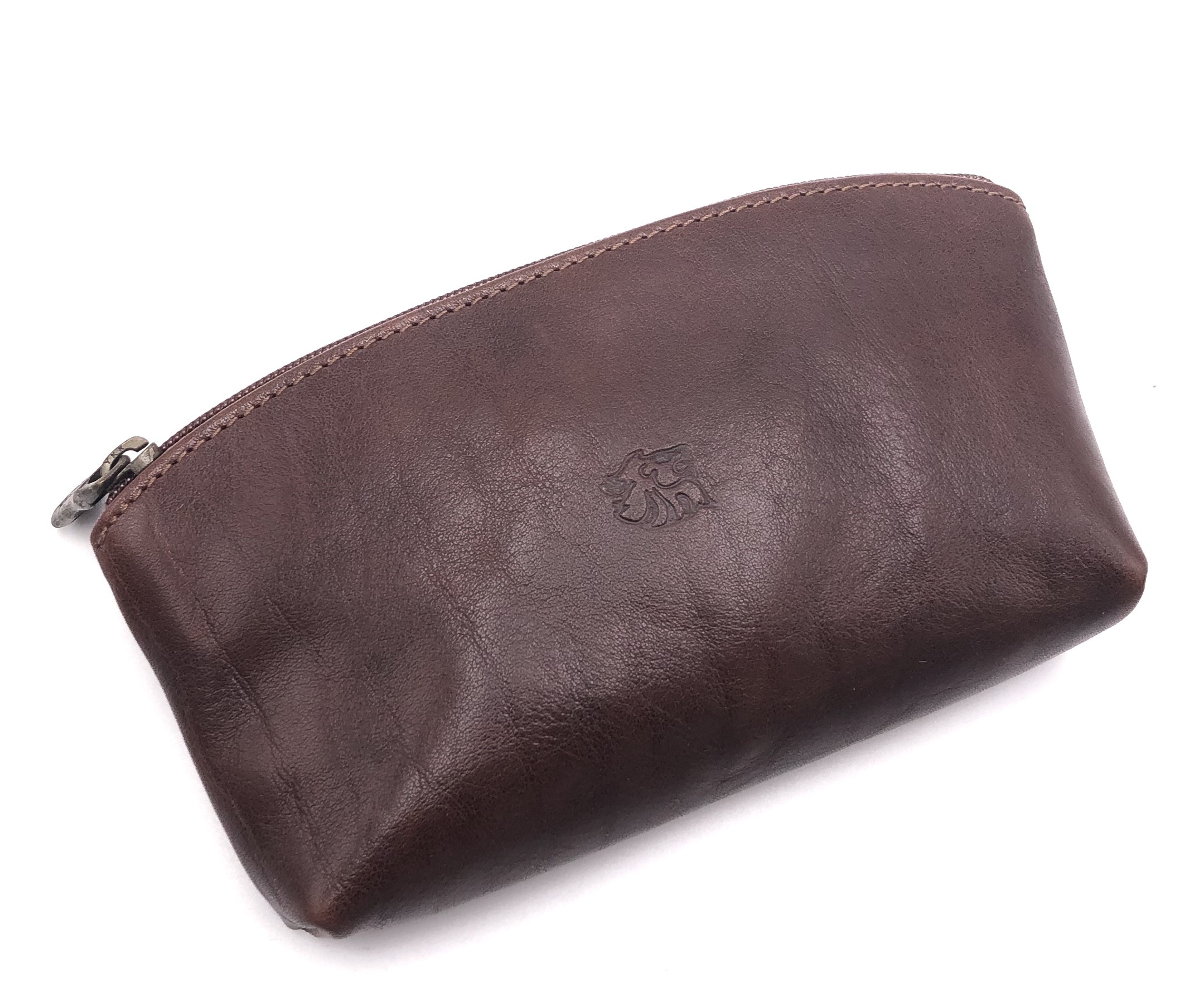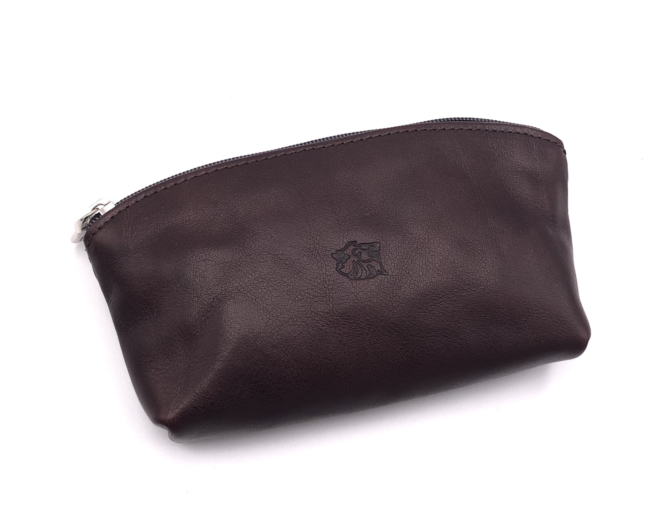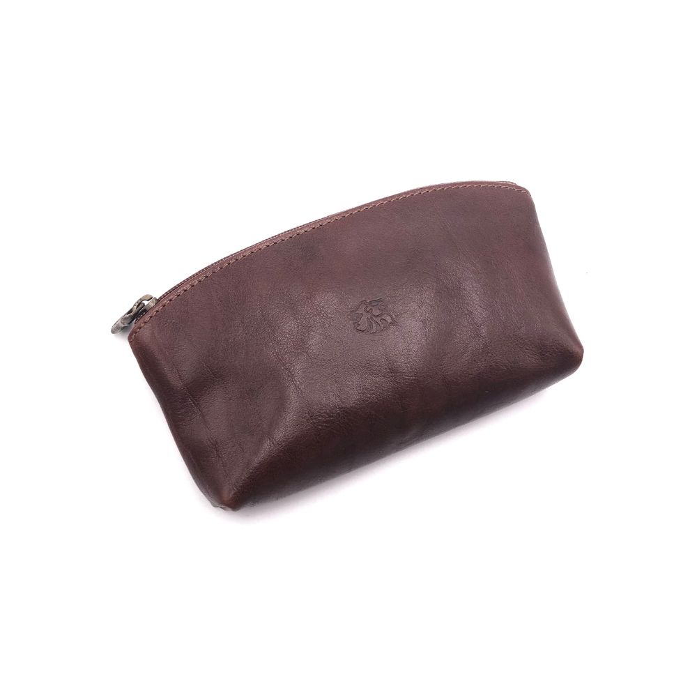 Porta chiavi bustina in pelle, con finiture in tinta, logo impresso a fuoco.