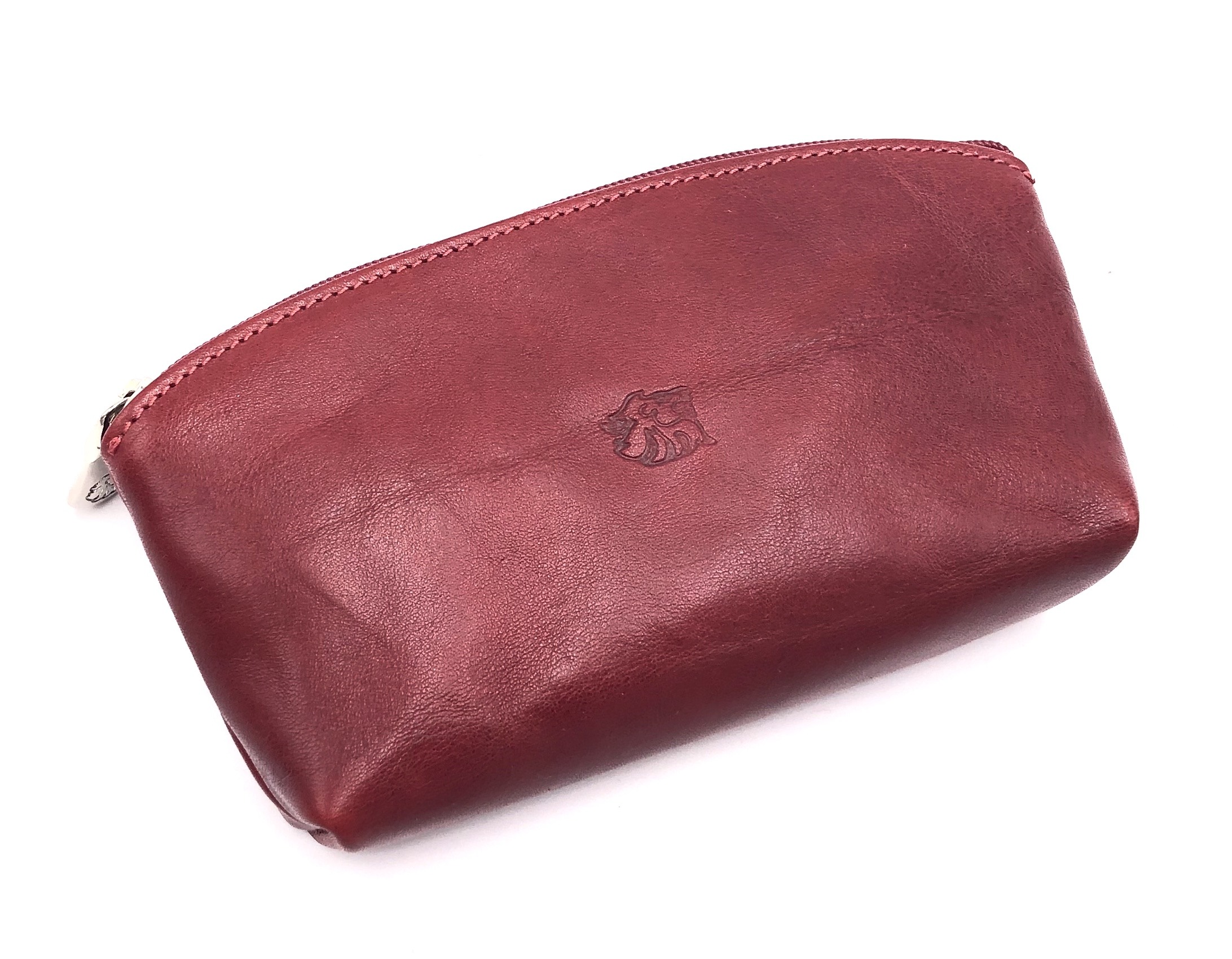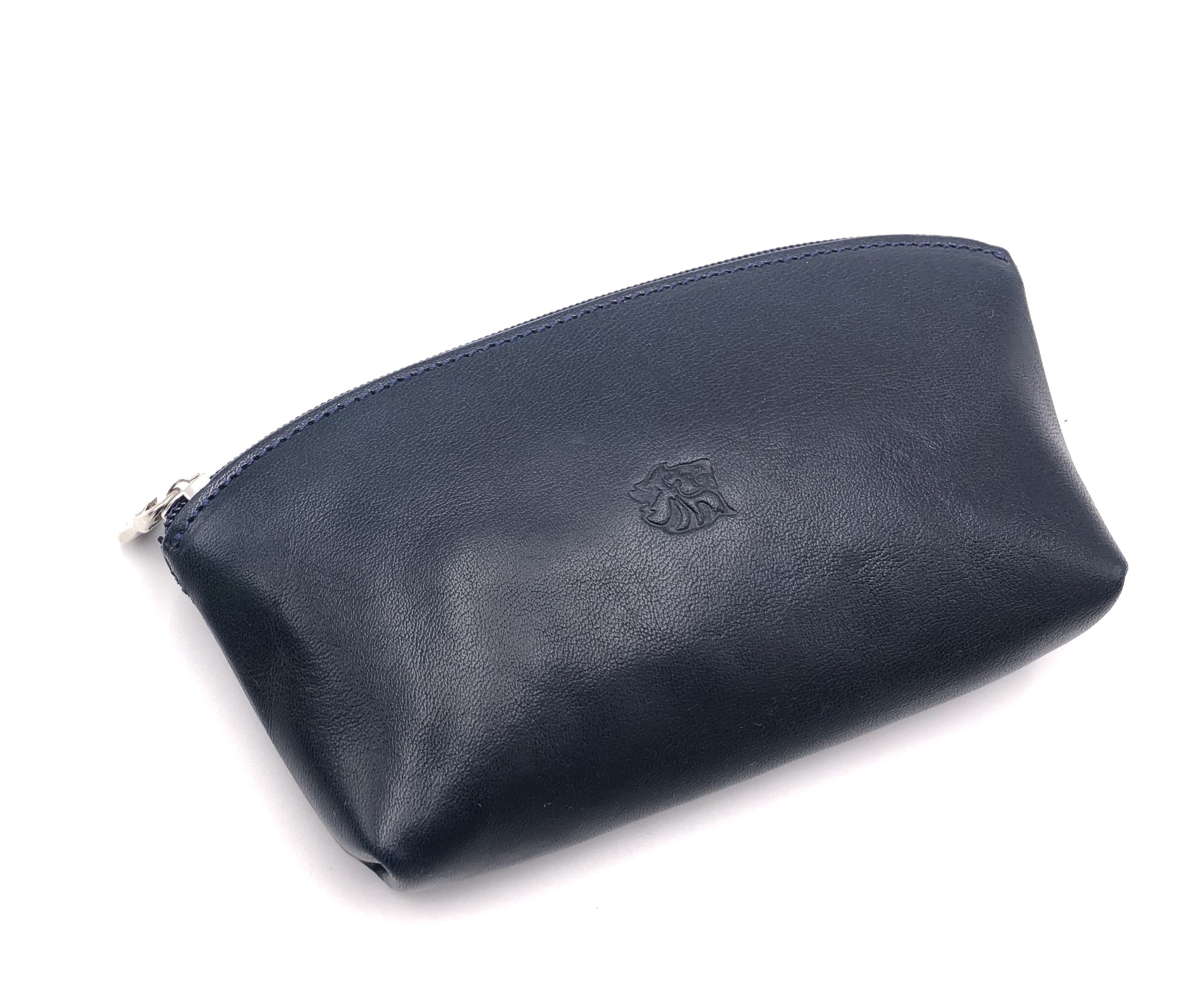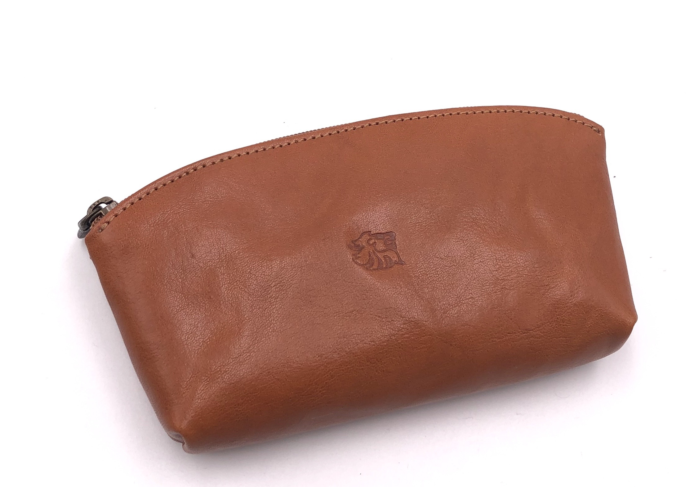 Porta chiavi bustina in pelle, con finiture in tinta, logo impresso a fuoco.