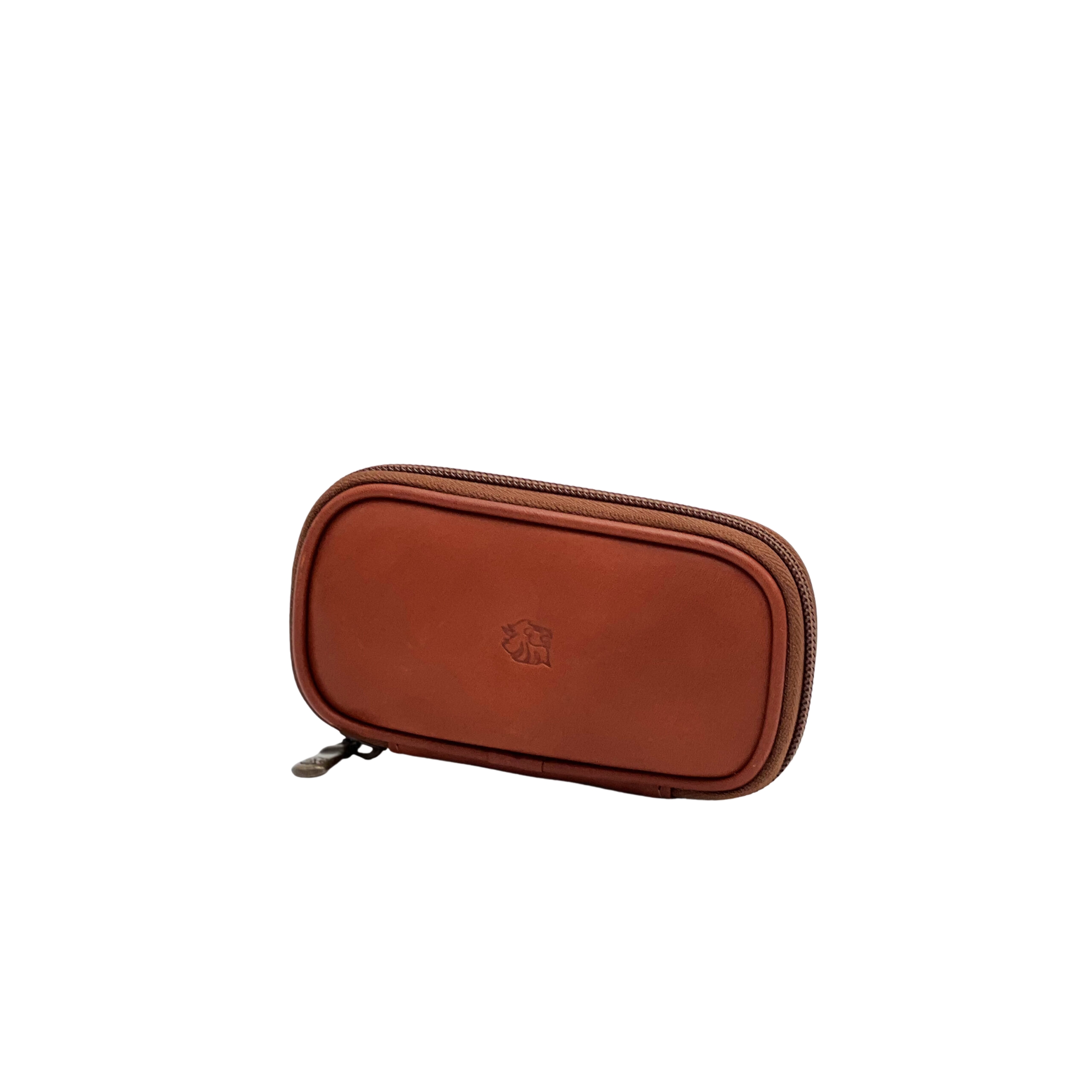 Porta chiavi in pelle chiuso con zip, con finiture in tinta, logo impresso a fuoco.